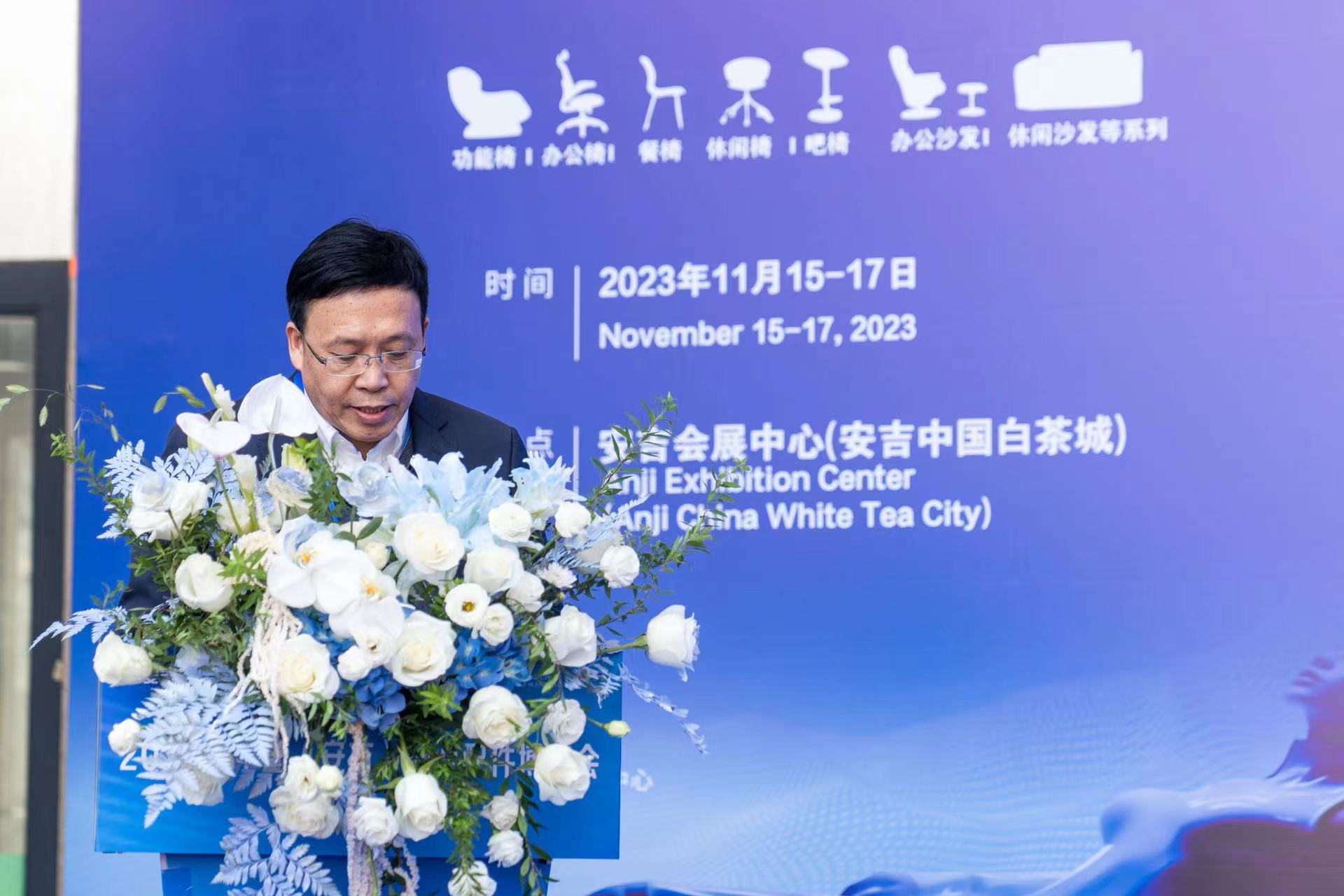 11月15日,2023 中(zhōng)國(guó)(安(ān)吉)椅業配件博覽會今天盛大開幕。浙江省椅業協會會長(cháng)、恒林家居董事長(cháng)王江林出席本次開幕式。