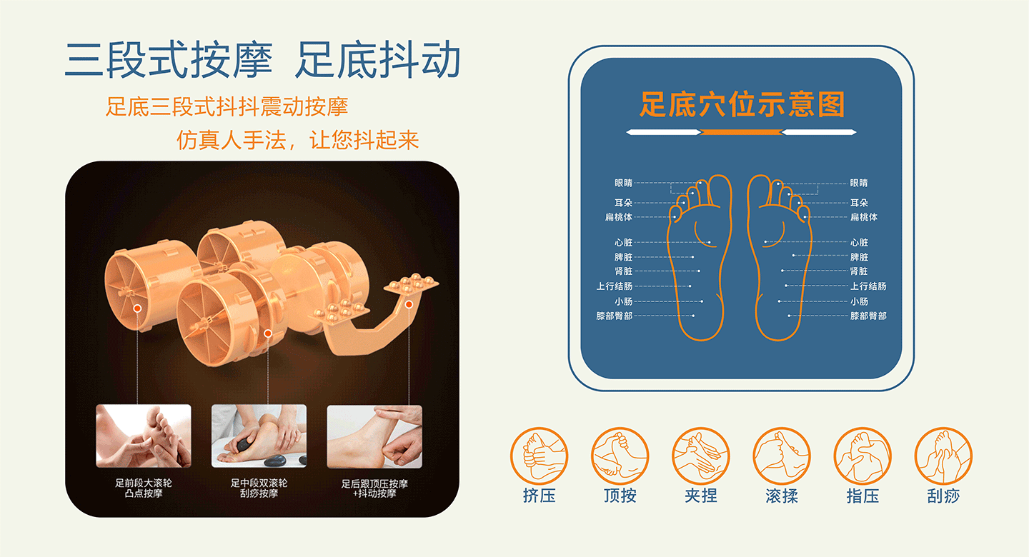 介紹:極緻高端設計!緩解疲勞,有(yǒu)利于腿腳各穴位的按摩,達到放松效果。